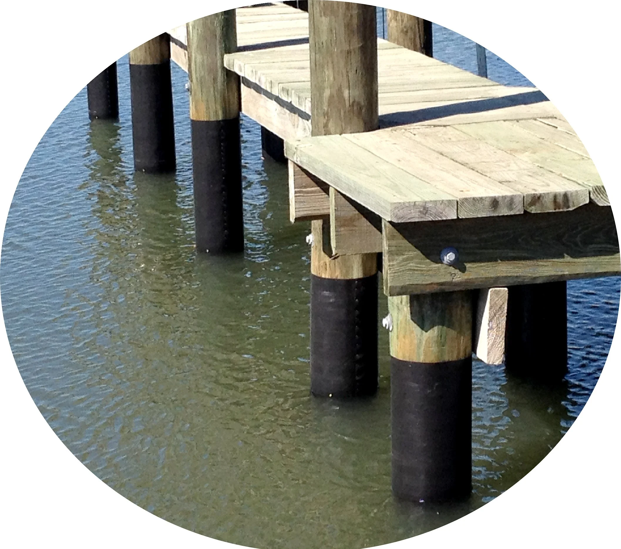 Our professionals inspect your pilings to ensure they are solid and built to last with protective pilings wraps and cement encapsulations.